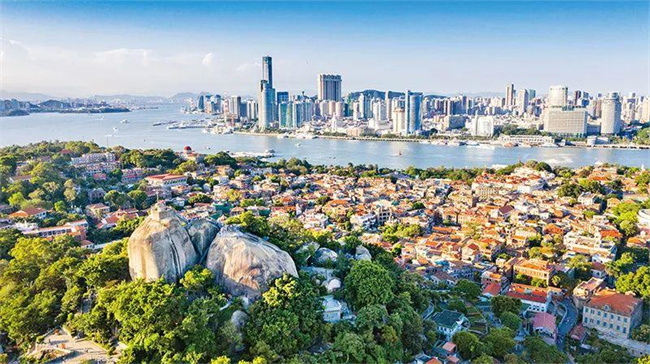 厦门位于福建省东南端,别称鹭岛,是我国首批设立的经济特区之一。改革开放以来特别是党的十八大以来,厦门经济社会得到长足发展,逐渐成为现代化国际性港口城市。图为美丽的生态花园城市厦门。福建省委宣传部供图